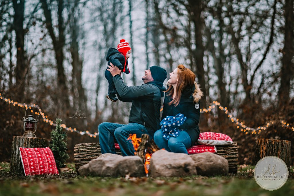 When I was putting this years Mini Sessions together for Christmas, I had one of my wild thoughts and mentioned it to a friend. “What if I did wooden logs around a campfire and captured each family enjoying a S’mores?”