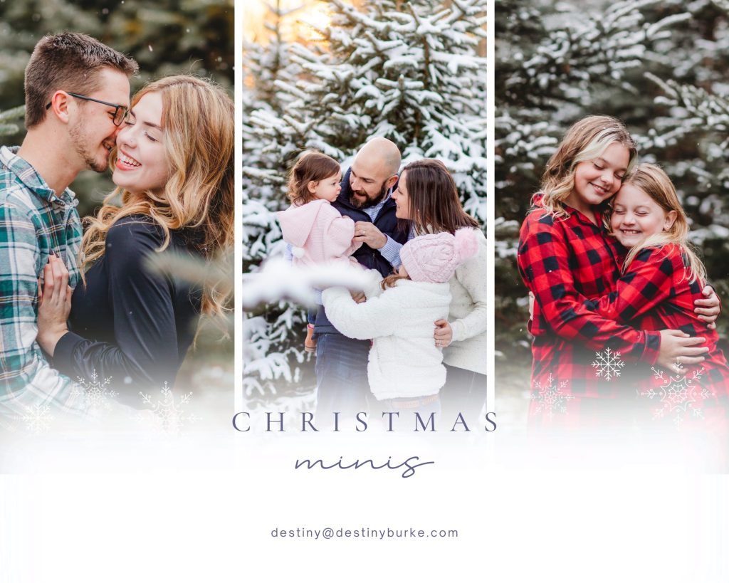 We have chosen to keep our tradition of having our Christmas Mini Sessions at the same tree farm as we have the last few years. The photos are breathtaking, the landowner is amazing, we get the land to ourselves and it’s just a 10 second walk from your car so you can warm up when we are done! Fast and Fun!